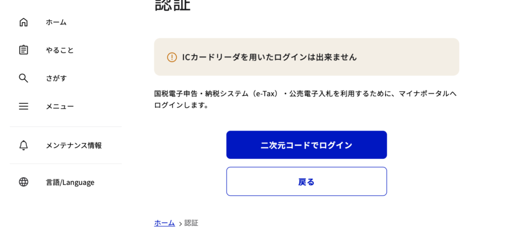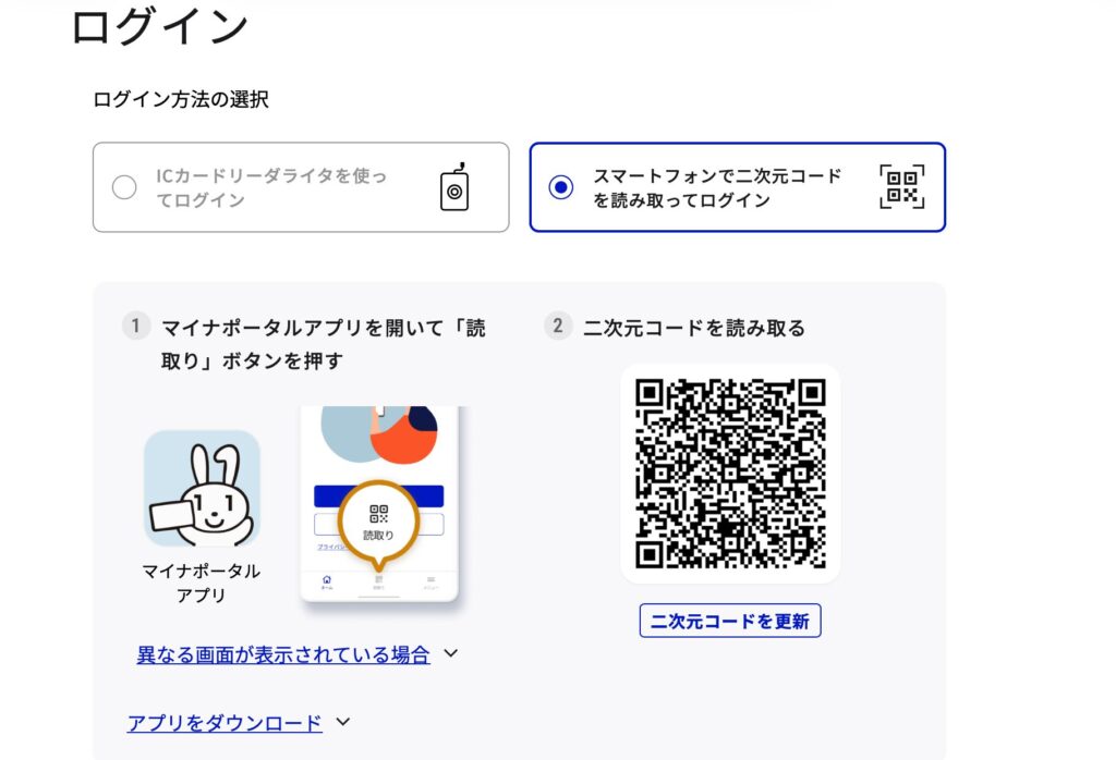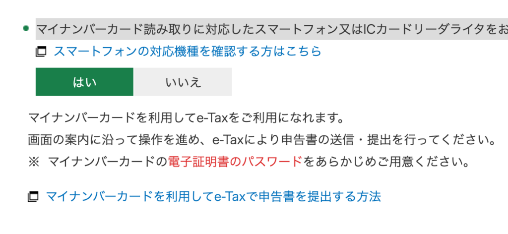 マイナンバーカード読み取りに対応したスマートフォン又はICカードリーダライタをお持ちですか。もはいをクリック。