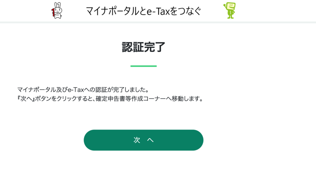 認証が完了するとPC画面が変わります。次へをクリックします。